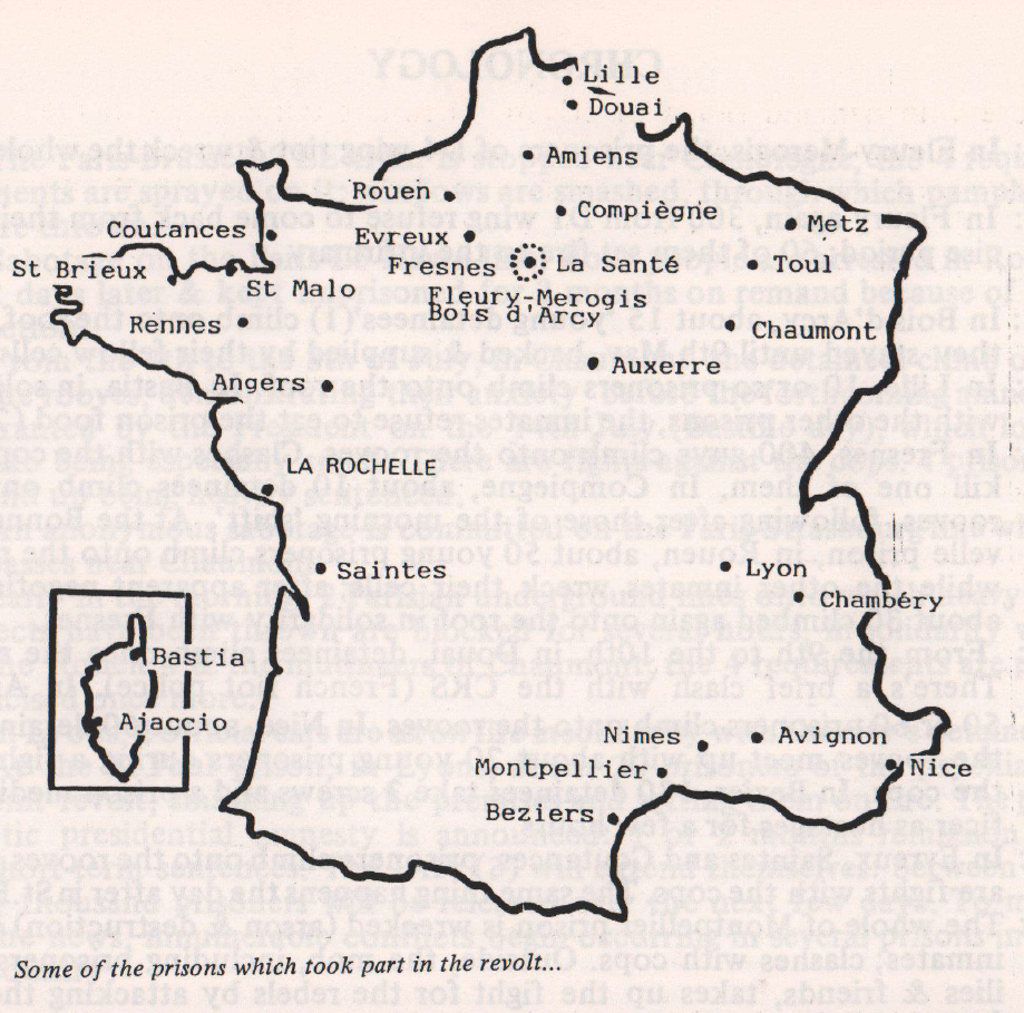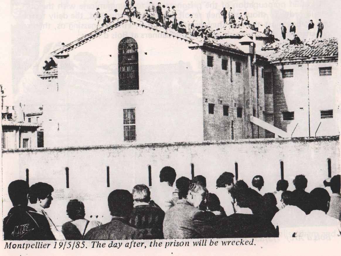 We have a lot of friends in the nick, and we ourselves could end up there.. That is, we have felt the current wave of revolt, which began on Sunday May 5th with the mutiny of part of Fleury-Merogis Prison, coming for a long time.
