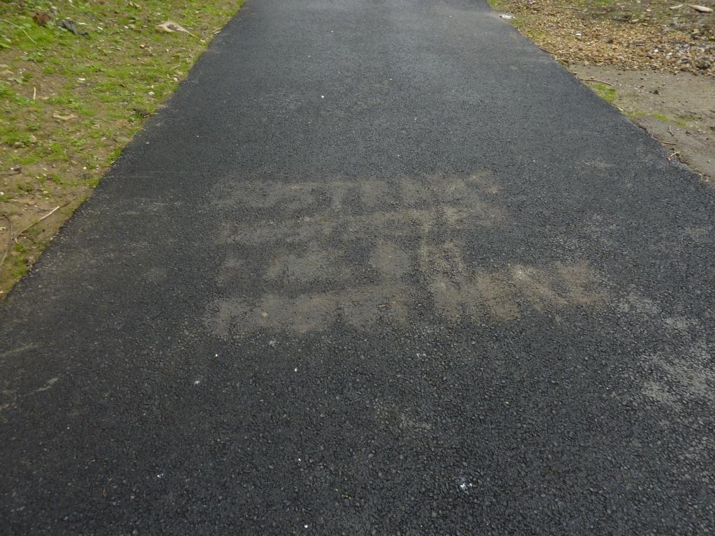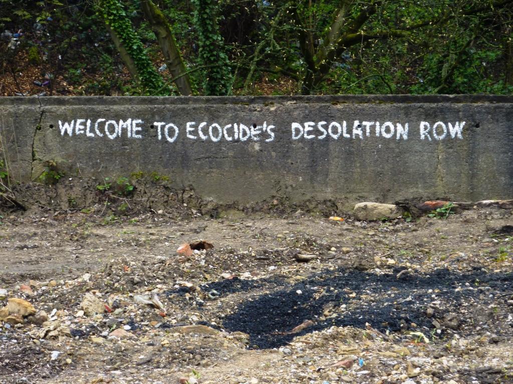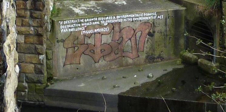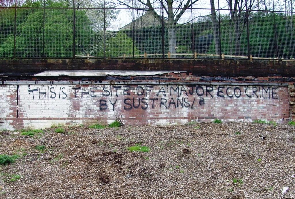 "this is the site of a major eco-crime by Sustrans" graffiti