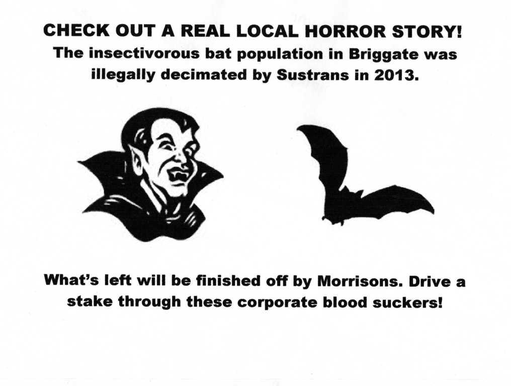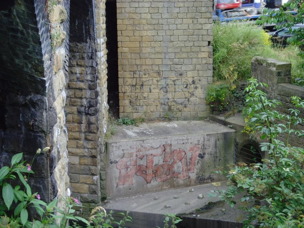 Although bats are protected species and flew in abundance in Briggate they also had to be destroyed. After all this was a nasty site of industrial dereliction and therefore only a nasty nature could exist here; one that must be purged for its own on-going health........ And the slogan above was almost immediately painted out. We complained as per usual but this time to the West Yorks Bat Group but again as perusual, we received no reply. Nothing to hide, of course, as this was simply the correct procedure countering wanton vandalism...... However, despite the gruesome purge, bats can still be seen here if anyone cares to take a look at dusk.