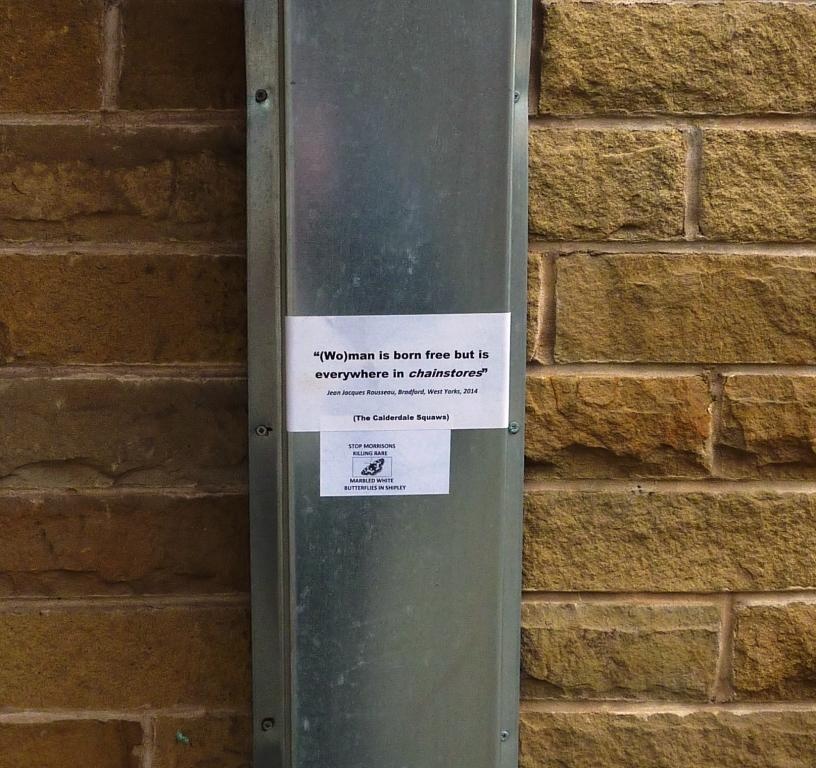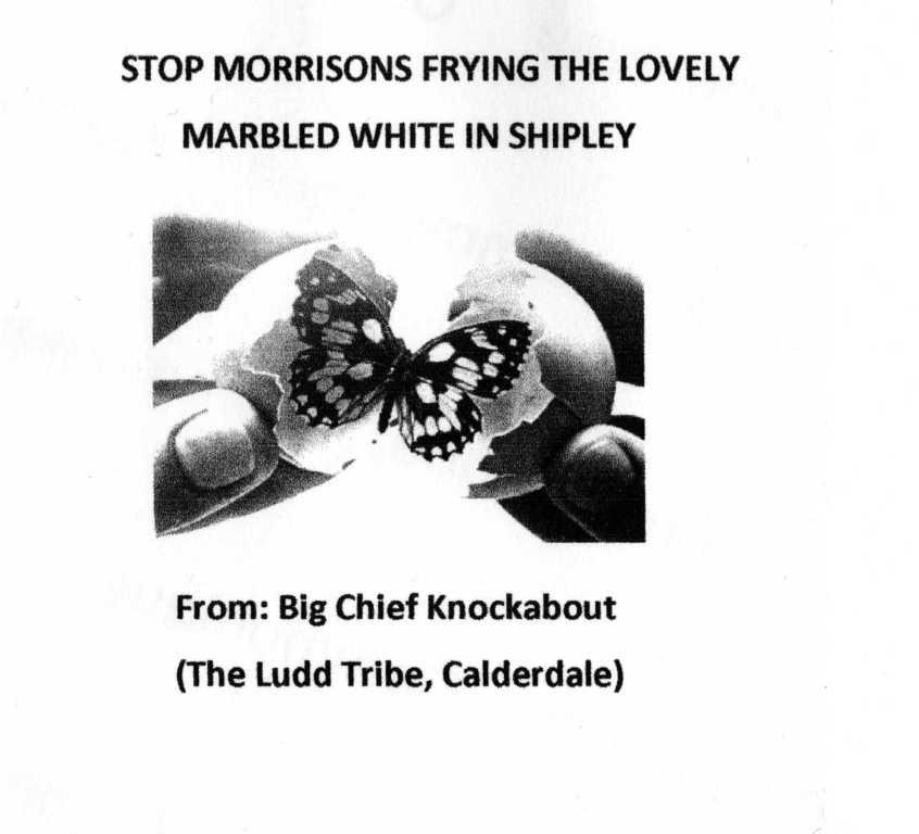 The above stickers were put up all over Shipley, especially the market place adjacent to the destroyed terrain vague arena as well as Bradford's university campus. Most (it seems) were signed by the Calderdale Injuns, the Calderdale Squaws, Chief Last Night, General Knockabout of the Ludd Tribe, etc.