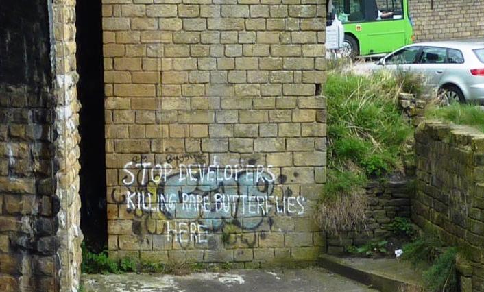Below: Here resides another wild nature site gutted by Bradford Council. Poster by Chief Last Night (Calderdale)