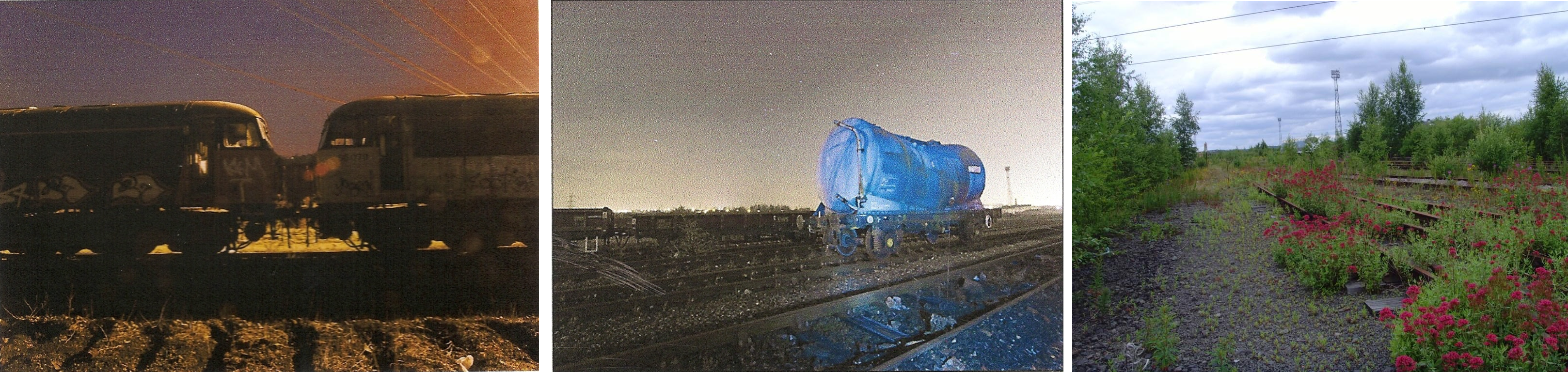 Below: Two at dusk atmospheric though arty urbexer photos of Healey Mills and a day time view (photographed by ourselves) of the overgrown railway tracks