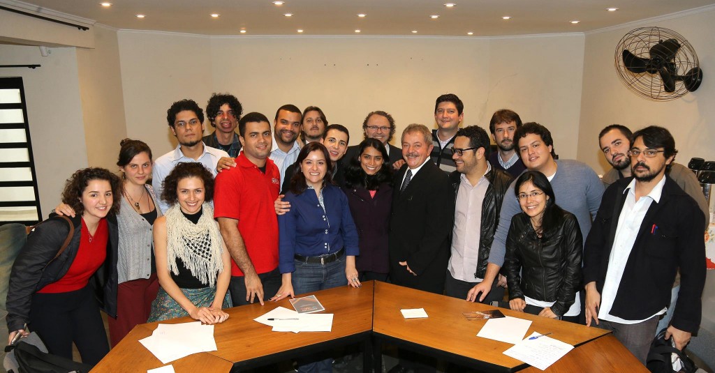 Lula meeting with representatives of the social movements. On the left in the second row is Pablo Capilé, manager of the Fora do Eixo company.