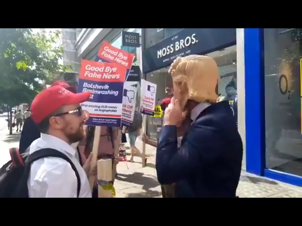 There were a bunch of Far-right protestors, who had been protesting against the "censorship" of infowars. A group carrying the same flags, posters and wearing the same "Make Britain Great Again" hats etc then went to socialist bookshop Bookmarks and vandlaised the displays and destroy books.