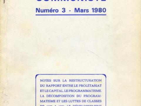 Théorie Communiste 3 (1980) Mars 1980/March 1980 - Notes sur la restructuration du rapport ente le prolétariat et le capital. - Le programmatisme. - La décomposition du…