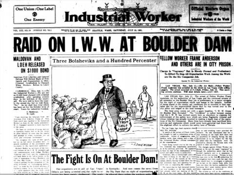 Raid on IWW at Boulder Dam An article from the July 18, 1931 issue of the Industrial Worker describing the arrest of IWW member, Frank Anderson, who was organizing workers at the Boulder Dam (later called Hoover Dam) project.