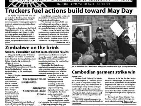 Industrial Worker #1705 (May 2008) The May 2008 issue of the Industrial Worker, the newspaper of the revolutionary union, the Industrial Workers of the World (IWW).
