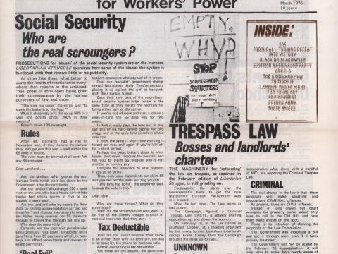 Libertarian Struggle #25 (March 1976) Issue #25 of Libertarian Struggle, with articles on a crackdown against "scroungers", the criminal trespass law, the SAS in Northern Ireland, the…